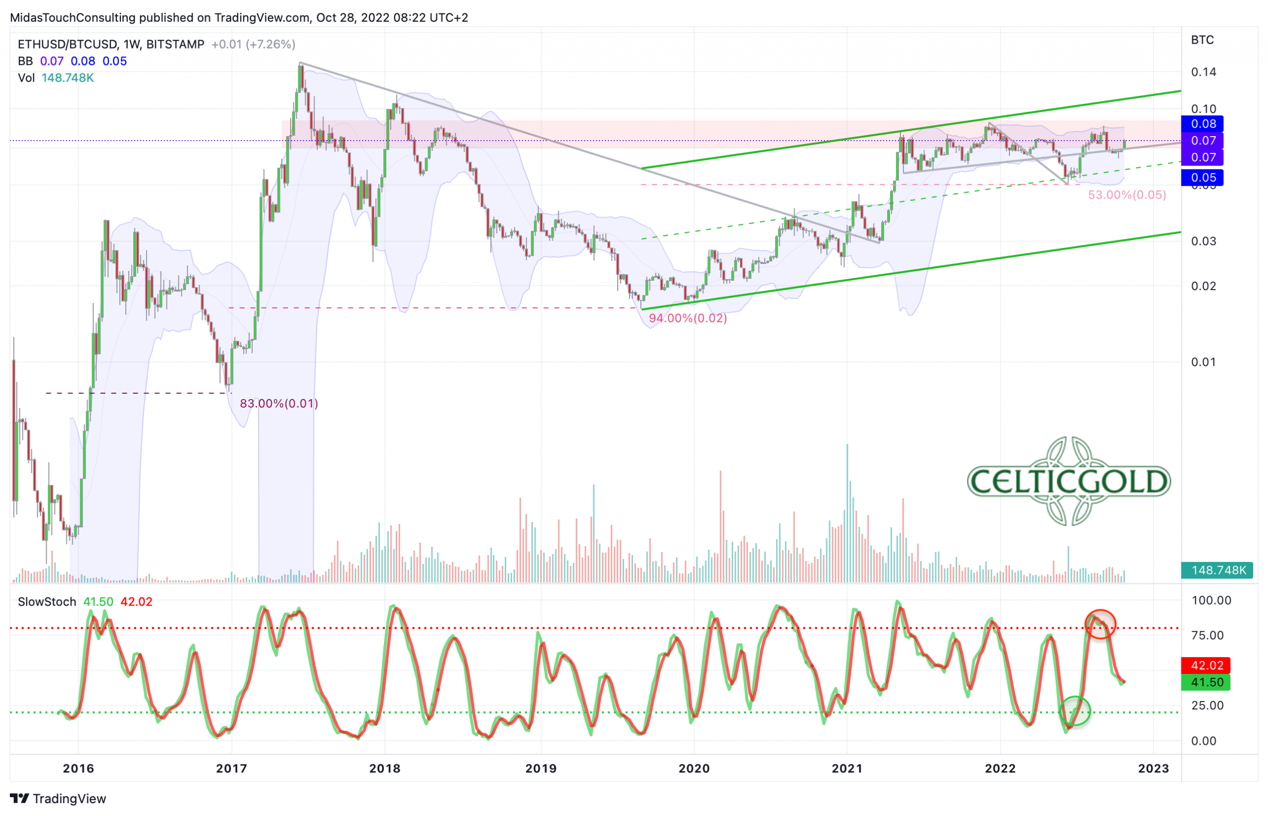 Ethereum/Bitcoin-Ratio, weekly chart as of October 31st, 2022. Source: Tradingview