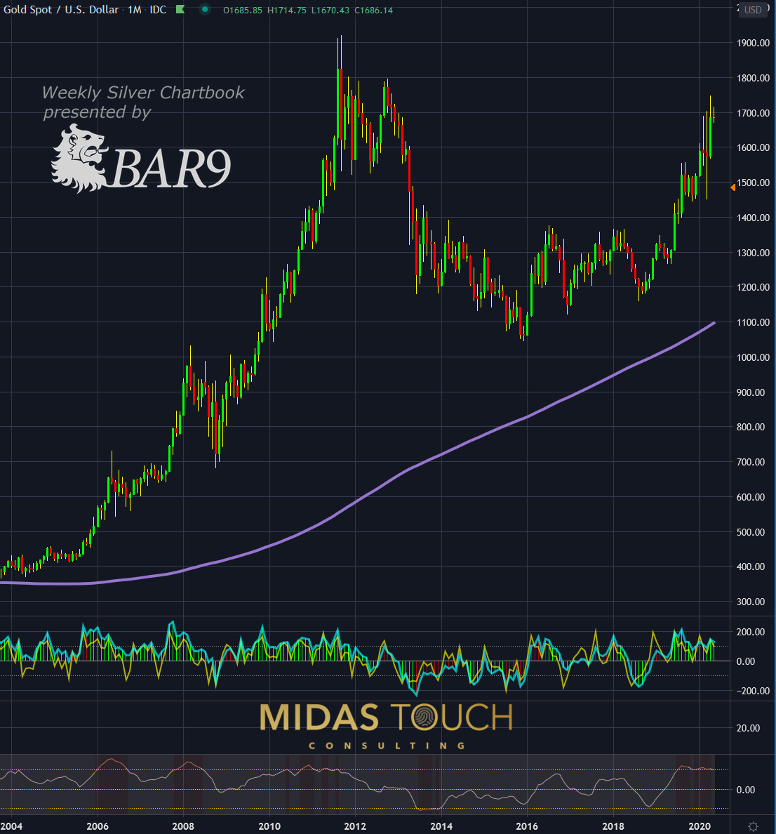 Gold in US Dollar, monthly chart as of May 6th, 2020